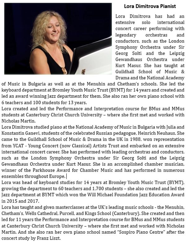 Hannah pairs family life with her husband and three children, with a busy performance schedule and an even busier teaching timetable. She was the resident soloist for the Mendip Male Voice Choir for over 15 years, performing as many as 30 concerts per year. In the summer of 2011, she performed with the choir as the warm-up act for Katherine Jenkins at Glastonbury Abbey’s Classical Festival, for an audience of approximately 10,000. She reached the semi-final of the prestigious Thelma King Award for Singers in Bath in 2008 at the Guildhall, and the regional final of the Kiri Prize hosted by Dame Kiri Te Kanawa on Radio 2 in 2009. She has achieved a Singing Diploma from the Associated Board of the Royal School of Music, has completed a PGCE with Greenwich University, a QTLS and a Licentiate Diploma from the London College of Music, for which she achieved 90% and then studied to qualify as a Vocal Health First Aider, and in a complete change, a Birth Doula.